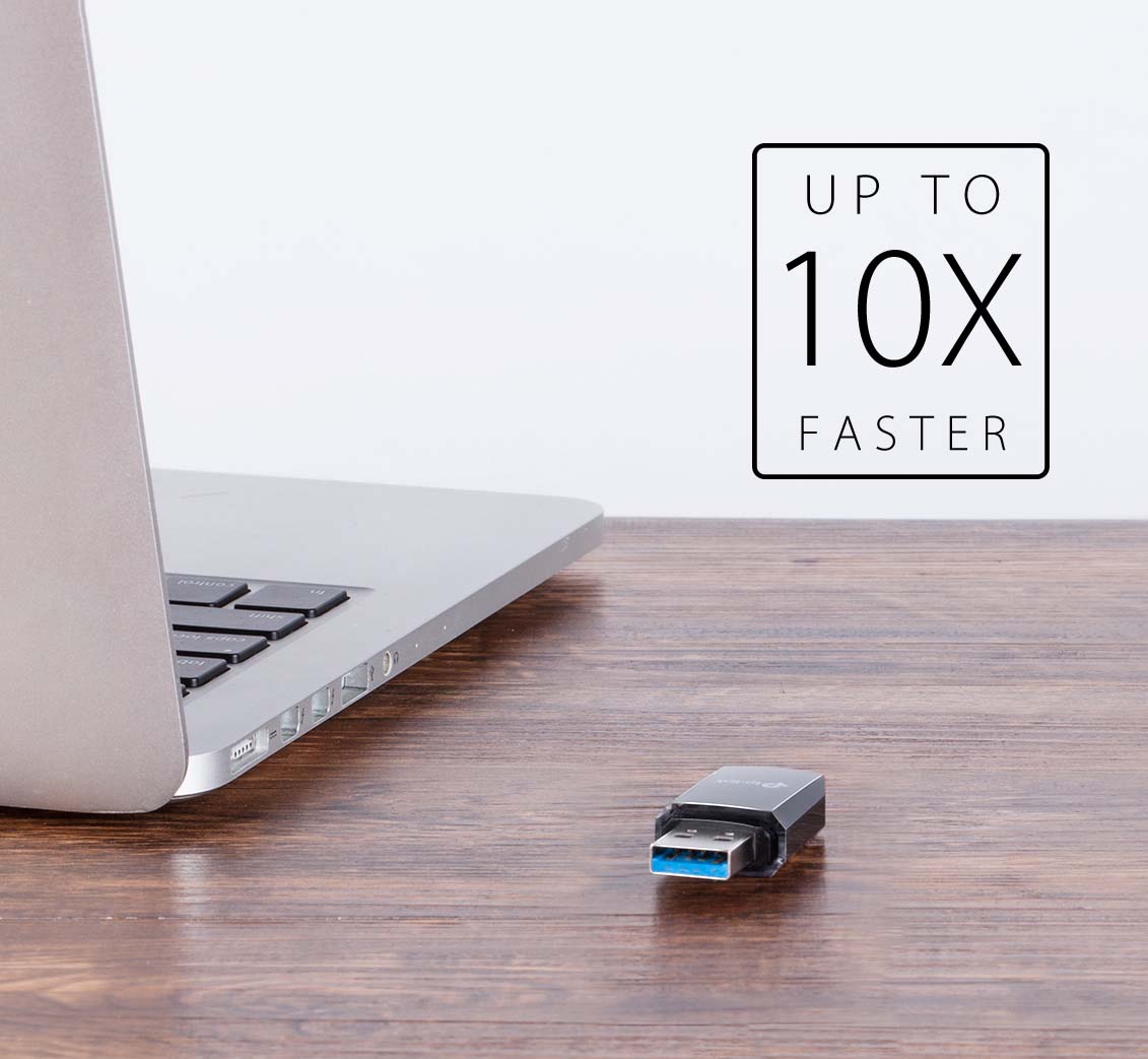 Tốc độ truyền vượt trội USB WiFi TP-Link Archer-T3U mang đến trải nghiệm tốc độ truyền tải dữ liệu cực nhanh lên đến 4.8Gbps với cổng USB 3.0, tăng gấp 10 lần tốc độ so với cổng 2.0 |